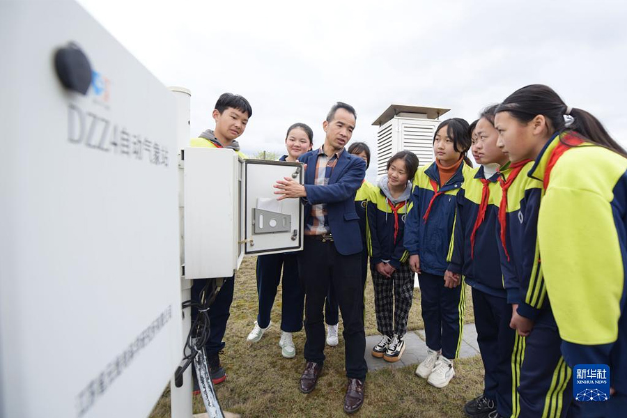 1/03月21日,四川省華鎣市雙河三小五年級(jí)四班的老師在給學(xué)生講解節(jié)約用水知識(shí)。(新華社發(fā) 邱海鷹/攝)