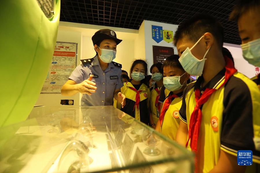 1/09月1日,在貴州省赤水市天臺(tái)學(xué)校,民警給學(xué)生講解新型毒品相關(guān)知識(shí)。(新華社發(fā) 王長(zhǎng)育/攝)