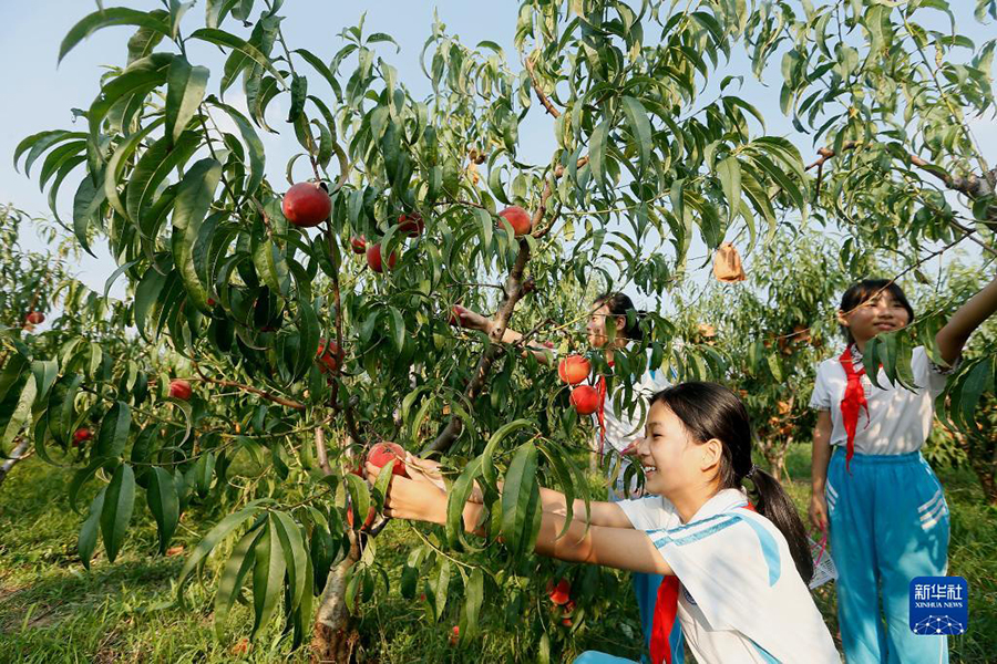1/09月1日,山東青島藍(lán)谷高新區(qū)東皋埠小學(xué)的學(xué)生在即墨區(qū)靈山街道沃家泊子村潤(rùn)豐農(nóng)場(chǎng)體驗(yàn)田間課堂。(新華社發(fā) 梁孝鵬/攝)