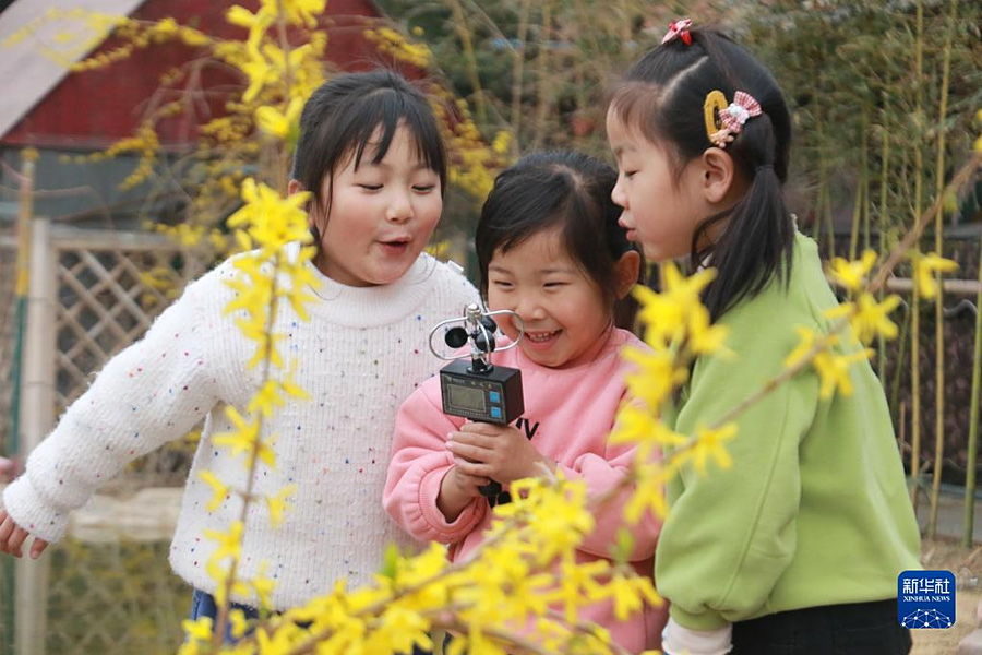 1/03月22日,在山東省高密市密水街道中心幼兒園,小朋友在體驗使用輕風表。(新華社發(fā) 李海濤/攝)