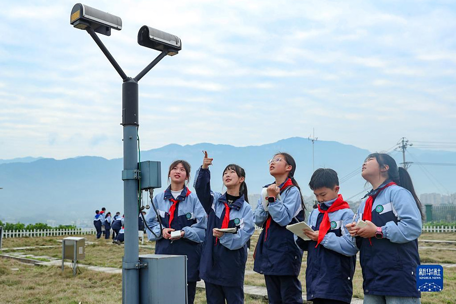 1/03月21日,四川省華鎣市紅巖小學的學生在氣象站參觀氣象設(shè)備。(新華社發(fā) 邱海鷹/攝)