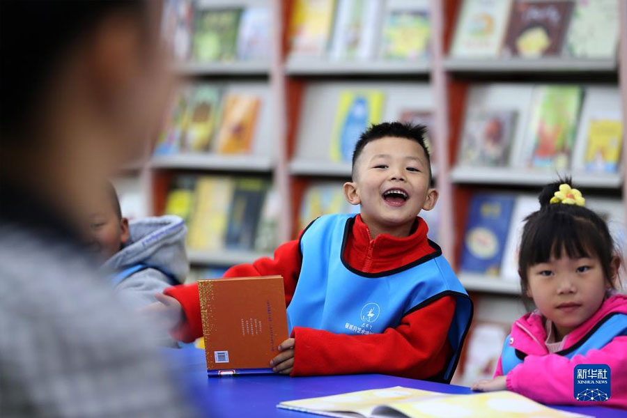 1/04月22日,小朋友在重慶市黔江區(qū)圖書館少兒閱讀主題活動(dòng)上分享自己的讀書故事。(新華社發(fā) 楊敏/攝)