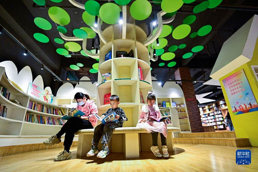 1/04月22日,人們在山東省青州市一家書店閱讀。(新華社發(fā) 王繼林/攝)