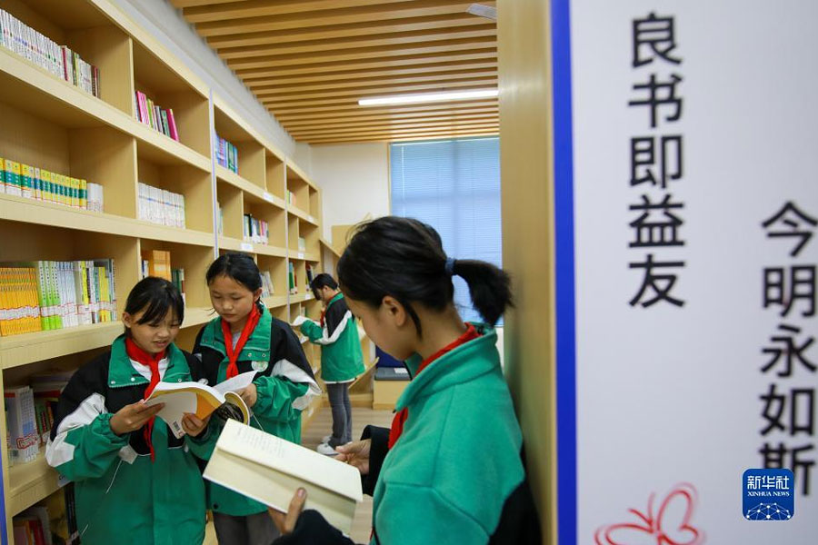 1/04月22日,學(xué)生在貴州省黔東南苗族侗族自治州從江縣城關(guān)第三小學(xué)的圖書室里閱讀。(新華社發(fā) 羅京來/攝)