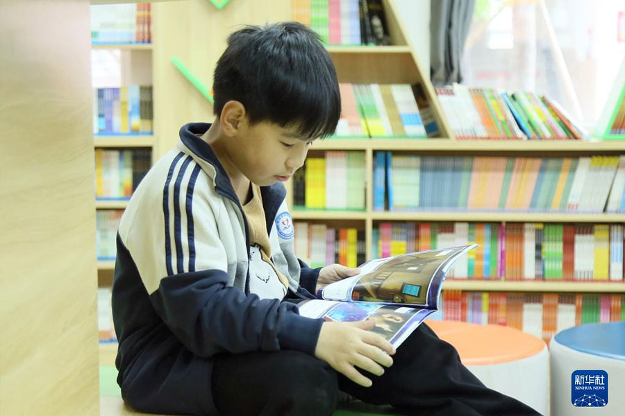 1/04月22日,在河南省洛陽市汝陽縣瑞云小學(xué)開展的讀書活動(dòng)上,一名學(xué)生在閱讀。(新華社發(fā) 康紅軍/攝)
