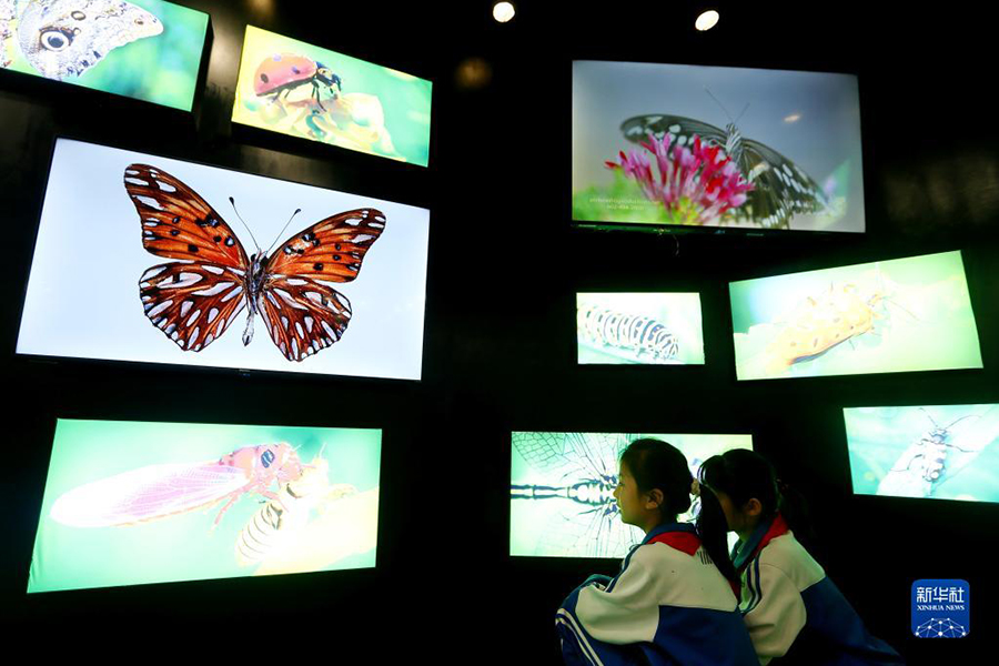 1/05月22日,小學(xué)生在中國農(nóng)業(yè)科學(xué)院青島特種作物研究中心試驗(yàn)基地學(xué)習(xí)昆蟲知識(shí)。當(dāng)日是國際生物多樣性日,山東省青島市即墨區(qū)龍泉街道蓮花山小學(xué)組織學(xué)生來到中國農(nóng)業(yè)科學(xué)院青島特種作物研究中心試驗(yàn)基地,開展“走進(jìn)科普課堂、探索生物奧秘”主題教育活動(dòng)。通過學(xué)習(xí)生物食物鏈知識(shí)、觀察昆蟲玻片標(biāo)本、探索農(nóng)作物害蟲綠色防控技術(shù)等形式,提高學(xué)生們對(duì)生物多樣性的認(rèn)識(shí)。(新華社發(fā) 梁孝鵬/攝)