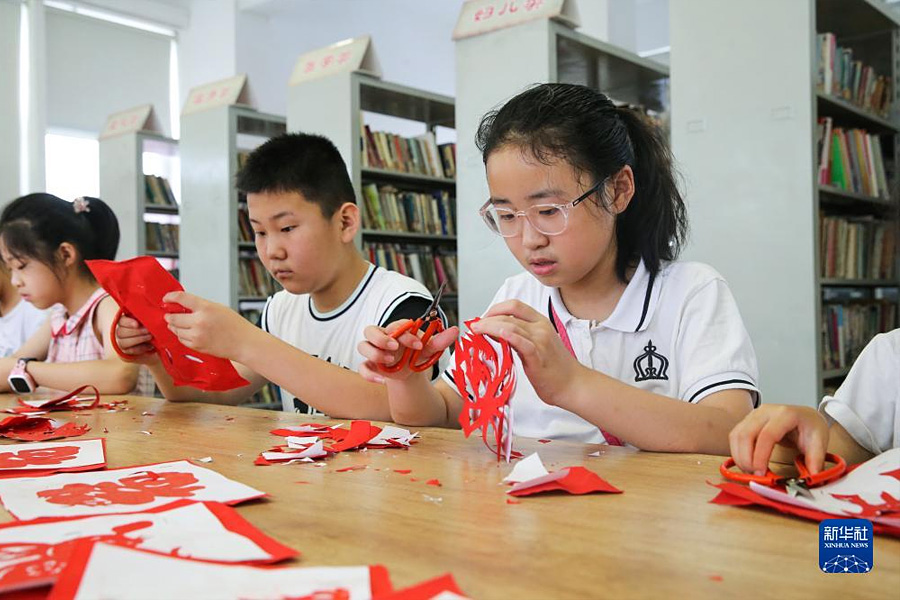 1/07月21日,在江蘇省連云港市連云區(qū)海州灣街道大港社區(qū)非遺公益課堂上,孩子們?cè)趯W(xué)習(xí)剪紙技藝。(新華社發(fā) 王健民/攝)