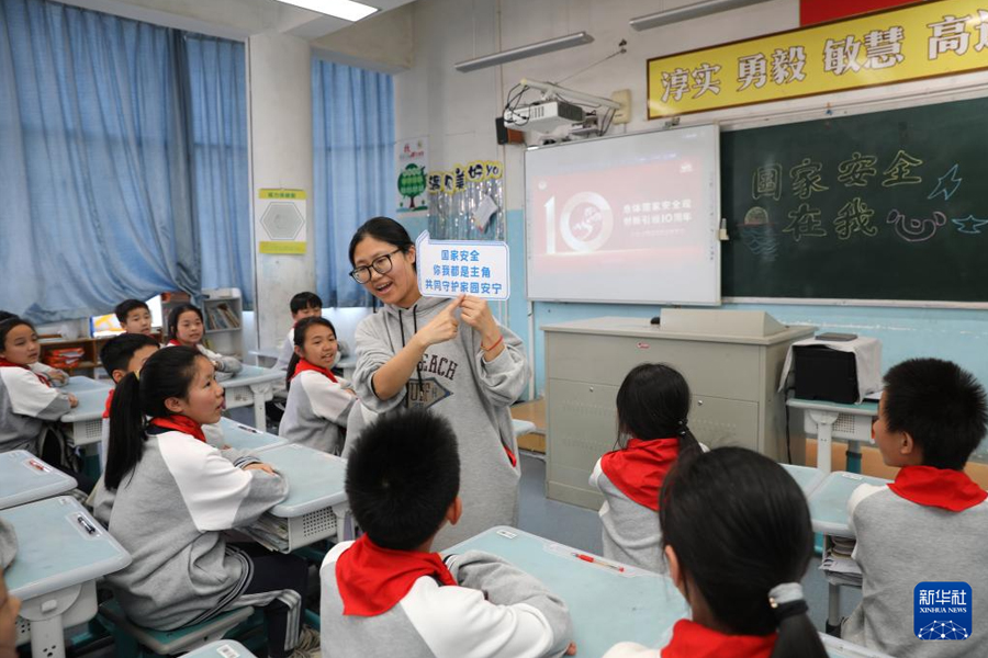 1/04月11日,浙江省東陽市江北小學(xué)教育集團(tuán)月亮灣校區(qū)的學(xué)生在課堂上學(xué)習(xí)國家安全相關(guān)知識(shí)。(新華社發(fā) 包康軒/攝)