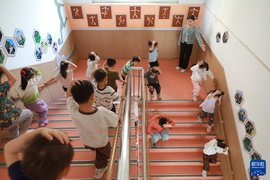 1/05月9日,河北省邯鄲市邯山區(qū)荀子實(shí)驗(yàn)幼兒園小朋友在防震減災(zāi)疏散演練中緊急疏散。(新華社發(fā) 李昊/攝)