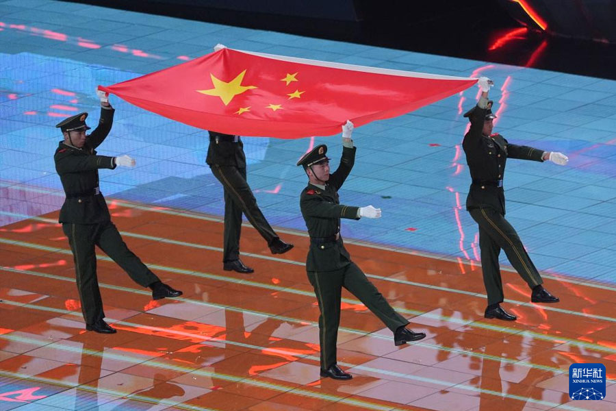 1/011月20日,中華人民共和國國旗在開幕式上入場。(新華社記者 薛宇舸/攝)