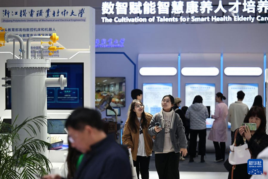 1/011月21日,參會(huì)者在職業(yè)教育專題展上參觀。(新華社記者 趙子碩/攝)