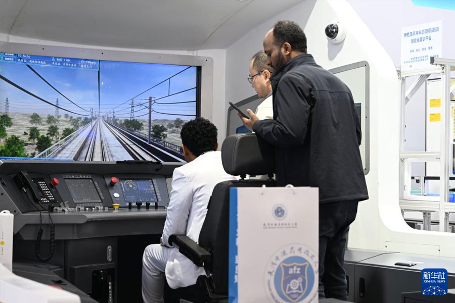 1/011月21日,參會(huì)者在職業(yè)教育專題展上體驗(yàn)高鐵模擬器。(新華社記者 李然/攝)