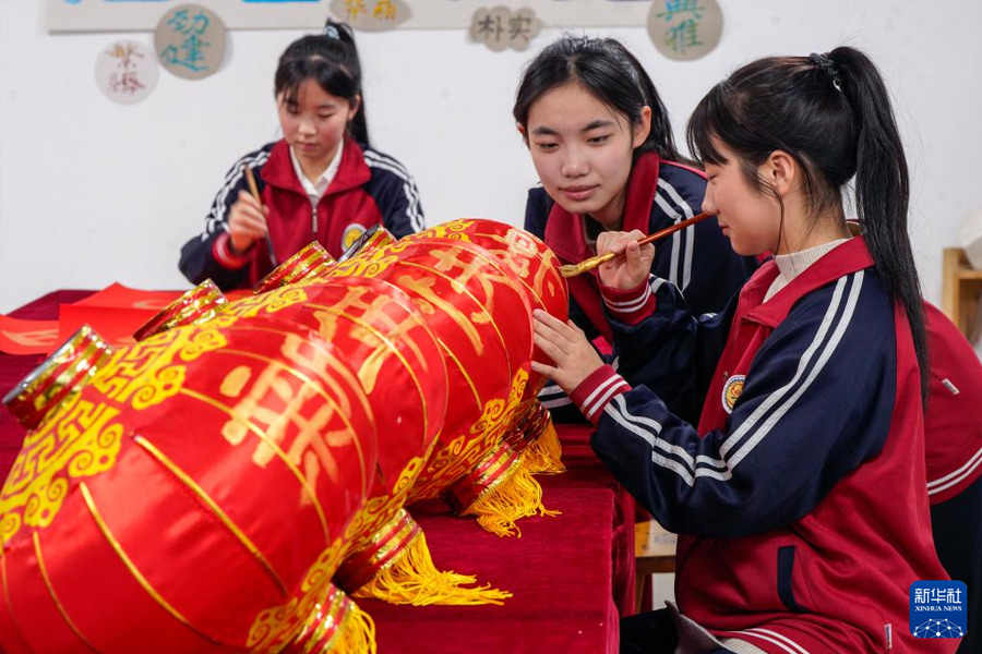 1/012月26日,河北省遵化市第一中學(xué)的學(xué)生在參加迎新年書法創(chuàng)作活動。(新華社發(fā) 劉滿倉/攝)