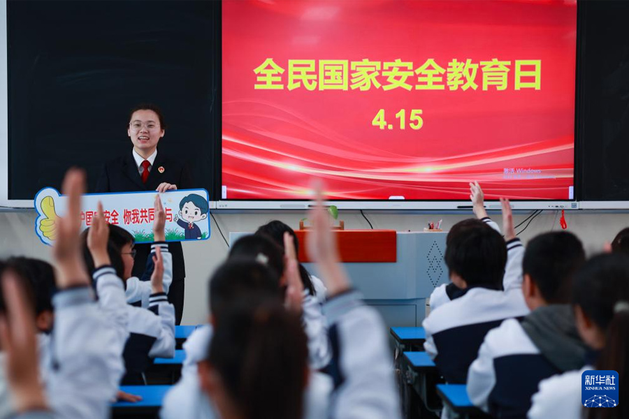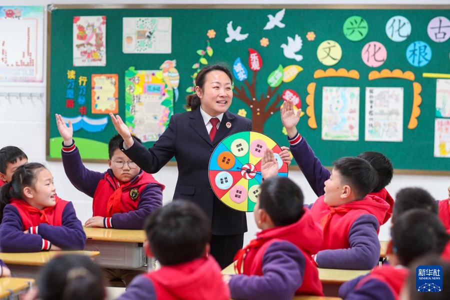 1/04月2日,講解員在河南省平頂山市寶豐革命紀(jì)念館為學(xué)生講述抗戰(zhàn)歷史。(新華社發(fā) 何五昌/攝)