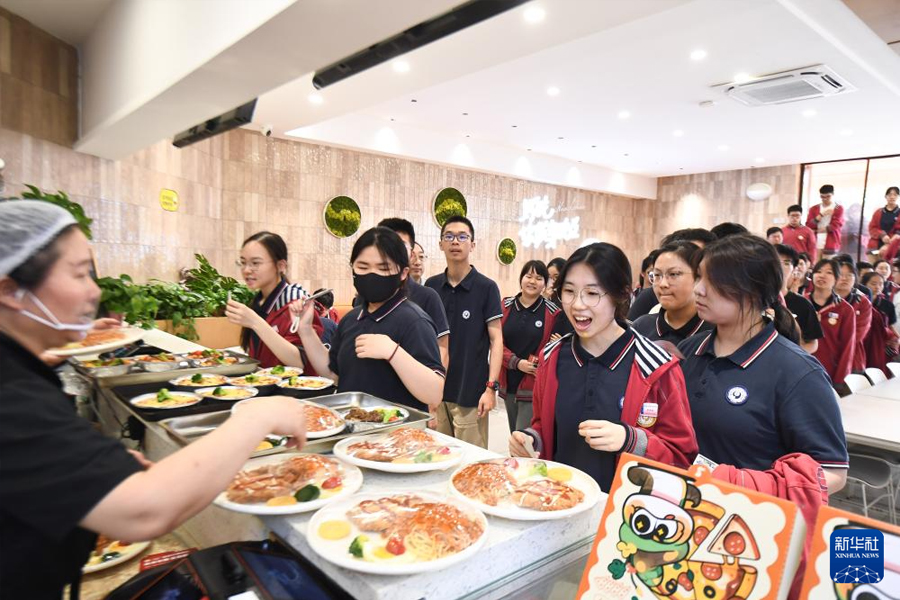 1/06月5日,學(xué)生在南京市第九中學(xué)食堂選購營養(yǎng)餐。近日,江蘇省南京市的不少中學(xué)食堂紛紛推出為考生特別定制的愛心營養(yǎng)餐。(新華社發(fā) 楊素平/攝)
