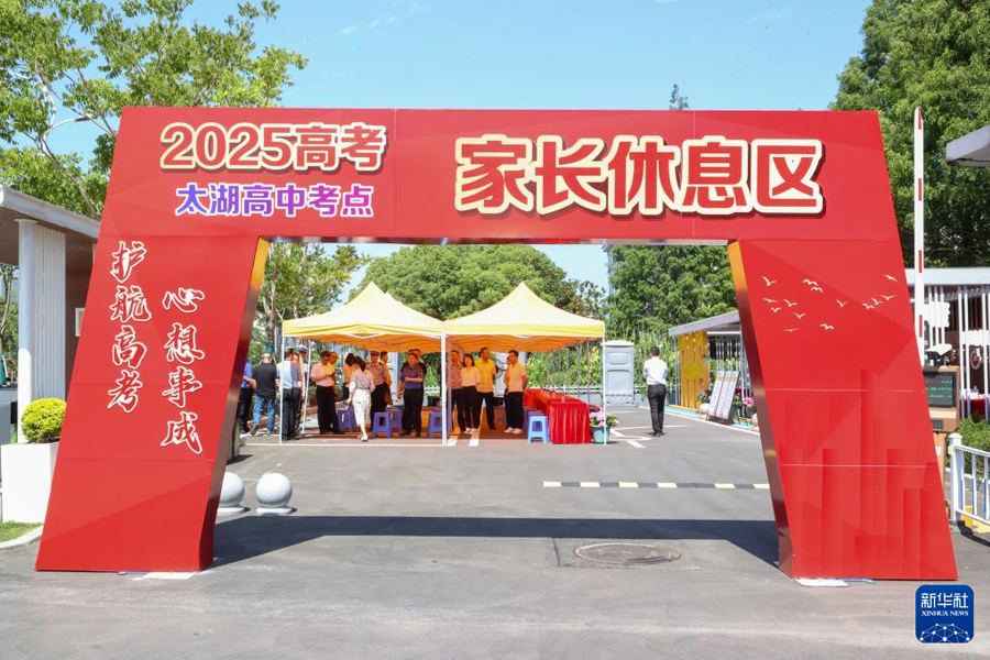 1/06月5日在江蘇省太湖高級中學(xué)考點外拍攝的家長休息區(qū)。(新華社發(fā) 朱吉鵬/攝)