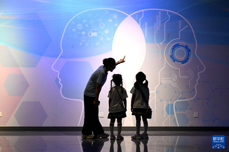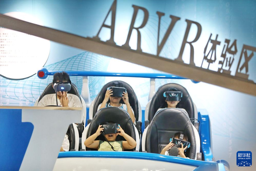 1/07月12日,在浙江省嘉興市科技館,小朋友在體驗人工智能ARVR裝置。(新華社發(fā) 金鵬/攝)
