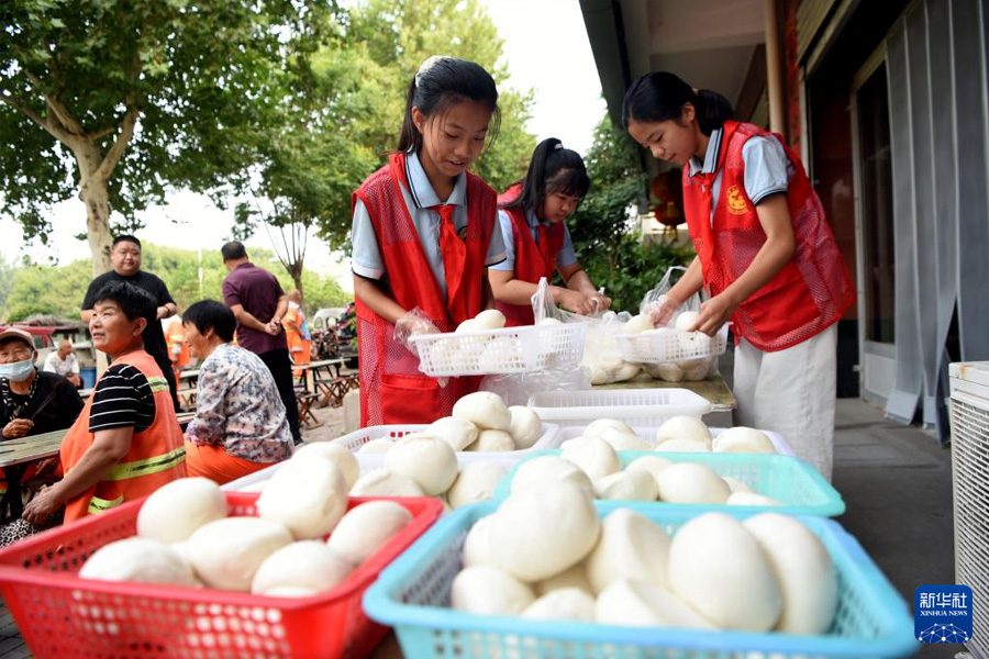 1/07月11日,河北省石家莊市欒城區(qū)育才學(xué)校組織學(xué)生在該區(qū)愛心早餐店參加志愿服務(wù)。(新華社發(fā) 李明發(fā)/攝)