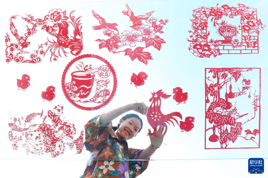 1/08月9日,河北省唐山市豐潤區(qū)燕山路街道欣園社區(qū),小朋友在制作剪紙作品。暑假期間,各地孩子參加豐富多彩的文化體育活動,充實假期生活。(新華社發(fā) 朱大勇/攝)