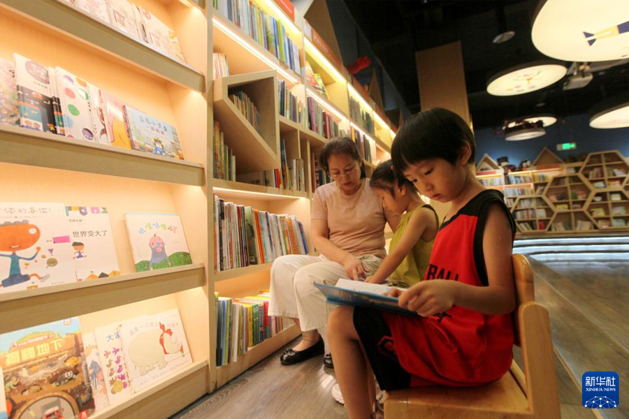 1/08月10日,小朋友在山東省臨沂市平邑縣新華書店閱讀圖書。(新華社發(fā) 武紀全/攝)