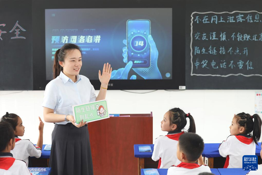 1/09月15日,河北省唐山市豐潤(rùn)區(qū)泉河頭小學(xué)老師在給學(xué)生講解網(wǎng)絡(luò)安全知識(shí)。(新華社發(fā) 朱大勇/攝)