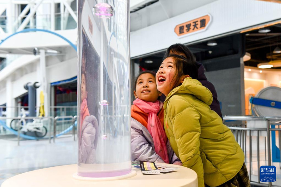 1/02月6日,小朋友在江蘇泰州科技館體驗(yàn)科學(xué)實(shí)驗(yàn)裝置。(新華社發(fā) 楊玉崗/攝)
