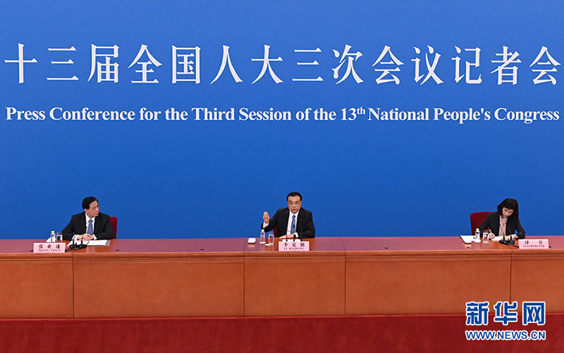 5月28日下午,十三屆全國人大三次會議在北京人民大會堂舉行記者會,國務院總理李克強應大會發(fā)言人張業(yè)遂的邀請出席記者會,并回答中外記者提問。(新華社記者 姚大偉/攝)