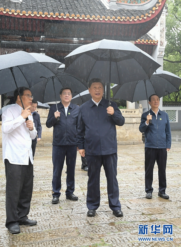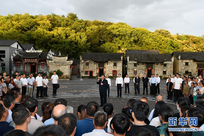 9月16日至18日,中共中央總書記、國家主席、中央軍委主席習近平在湖南考察。這是16日下午,習近平在郴州市汝城縣文明瑤族鄉(xiāng)沙洲瑤族村察看村容村貌,同村民親切交談。(新華社記者 謝環(huán)馳/攝)