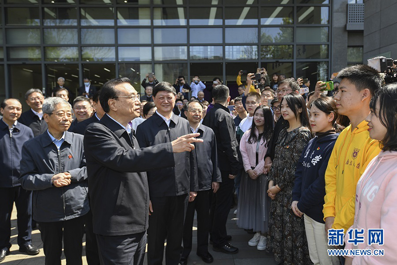 3月25日至26日,中共中央政治局常委、國務院總理李克強在江蘇常州、南京考察。這是3月26日,李克強在南京大學考察時與學生們交流。(新華社記者 殷博古/攝)