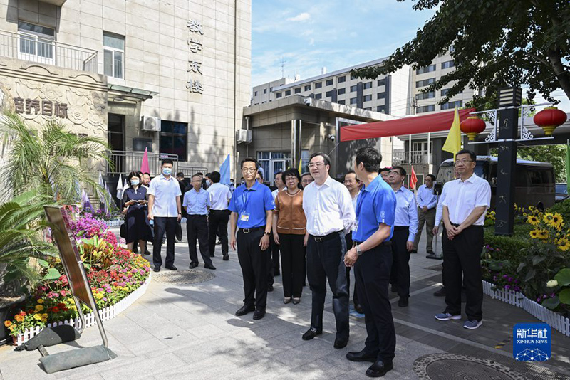 6月3日,中共中央政治局常委、國務院副總理丁薛祥到北京市和教育部教育考試院檢查2023年高考準備工作。這是丁薛祥來到北京交通大學附屬中學考點,察看考務組織各環(huán)節(jié)工作情況。(新華社記者 張領/攝)