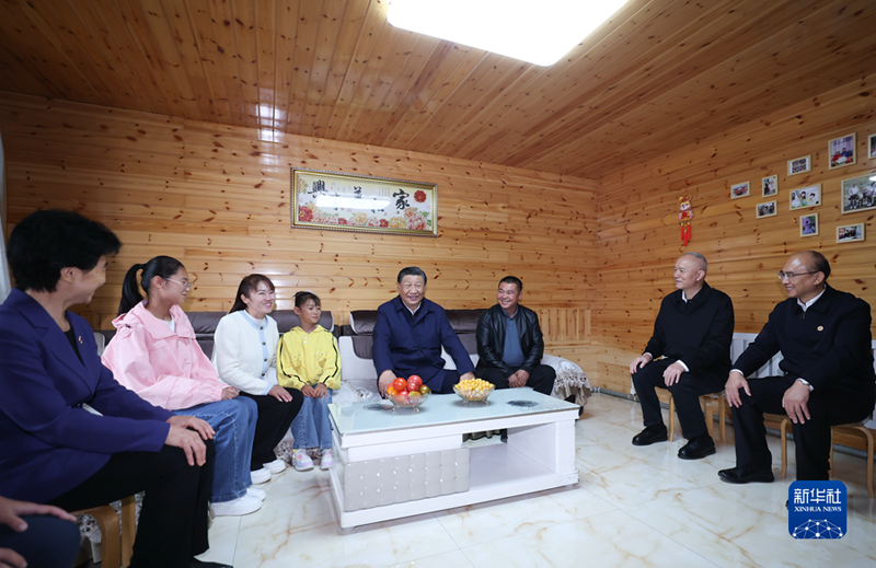 9月6日至8日,中共中央總書記、國(guó)家主席、中央軍委主席習(xí)近平在黑龍江考察。這是6日下午,習(xí)近平在大興安嶺地區(qū)漠河市北極村,同村民史瑞娟一家親切交談。(新華社記者 鞠鵬/攝)