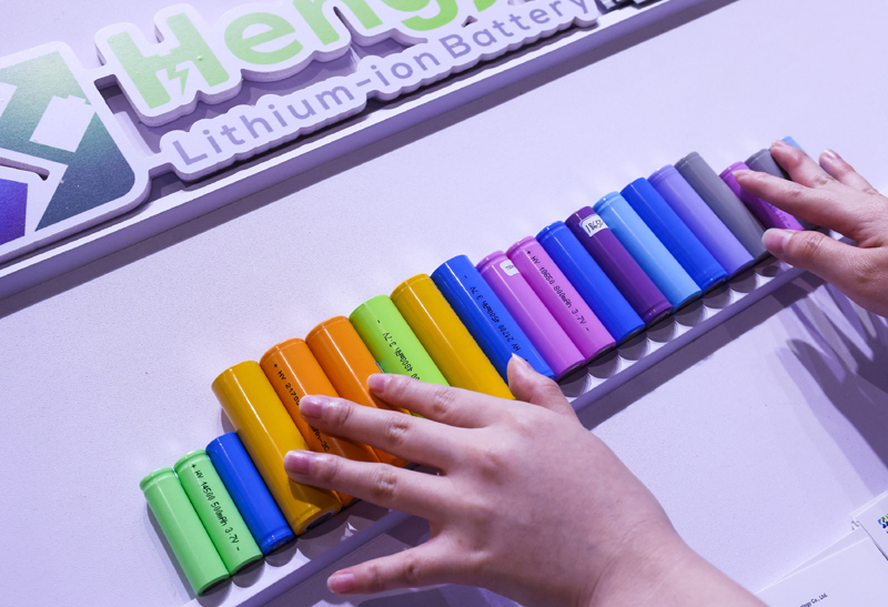 參展商在第135屆廣交會新能源展區(qū)布置鋰電池展品(2024年4月15日攝)。(新華社記者 劉大偉/攝)