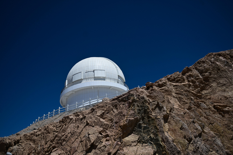 這是在青海省海西蒙古族藏族自治州茫崖市冷湖鎮(zhèn)賽什騰山拍攝的中國科學技術大學和中國科學院紫金山天文臺聯(lián)合研制的大視場光學成像望遠鏡——墨子巡天望遠鏡(2024年4月20日攝)。(新華社記者 張龍/攝)