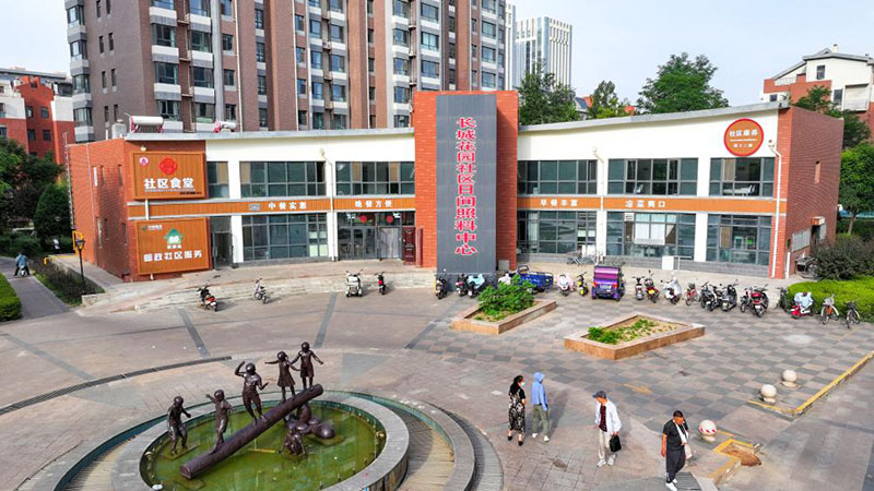 這是2024年6月20日拍攝的寧夏銀川市金鳳區(qū)長城花園社區(qū)日間照料中心(無人機照片)。(新華社記者 馮開華/攝)