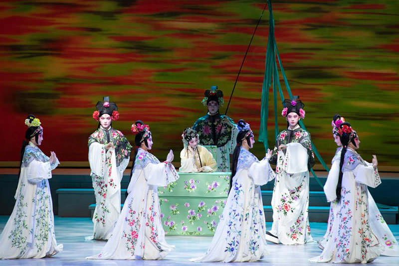 2024年9月14日,演員在北京大學百周年紀念講堂演出青春版昆曲《牡丹亭》。(新華社記者 劉夢琪/攝)