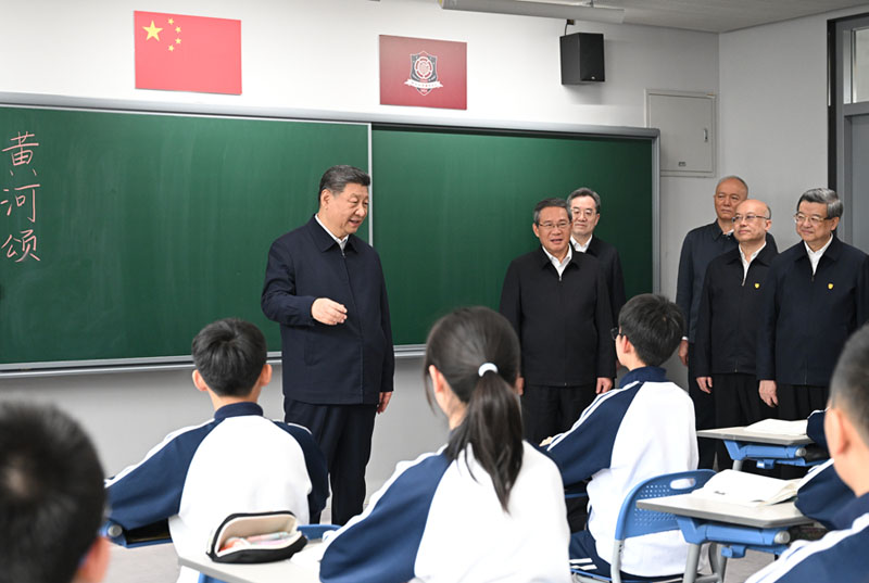 3月23日,中共中央總書記、國家主席、中央軍委主席習(xí)近平在河北雄安新區(qū)考察,并主持召開深入推進(jìn)雄安新區(qū)高質(zhì)量建設(shè)和發(fā)展座談會。這是23日上午,習(xí)近平在北京四中雄安校區(qū)考察時,走進(jìn)教室同師生親切交談。(新華社記者 謝環(huán)馳/攝)
