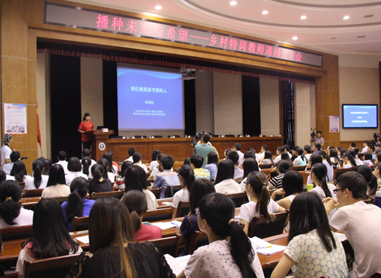7月8日,“播種希望與未來(lái)——鄉(xiāng)村特崗教師巡回報(bào)告團(tuán)”首場(chǎng)報(bào)告會(huì)走進(jìn)華中師范大學(xué)。報(bào)告會(huì)上,來(lái)自湖北、貴州、云南、陜西的5位特崗教師代表分享了在鄉(xiāng)村從教經(jīng)歷。華中師范大學(xué)師范生代表及湖北省其他高校學(xué)生代表300余人參加了報(bào)告會(huì)。報(bào)告會(huì)由教育部教師工作司……更多>>