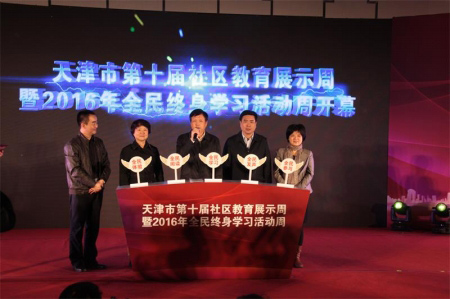 為深入貫徹黨的十八大和十八屆三中、四中、五中全會精神和習(xí)近平總書記系列重要講話精神,全面落實國家“十三五”規(guī)劃和教育規(guī)劃綱要關(guān)于“加快學(xué)習(xí)型社會建設(shè)”的戰(zhàn)略任務(wù),以 “推進(jìn)全民繼續(xù)教育,建設(shè)學(xué)習(xí)型社會”為主題的天津市第十屆社區(qū)教育展示周暨2016年全民終身學(xué)習(xí)活動周(以下簡稱“活動周”)于22日啟動。開幕式上,對2016年我市當(dāng)選全國及天津市的“百姓學(xué)習(xí)之星”和“終身學(xué)習(xí)活動品牌”進(jìn)行了表彰。同時,舉行了河北區(qū)“e家園”市民學(xué)習(xí)成果認(rèn)定展示,天津城市職業(yè)學(xué)院職教集團(tuán)服務(wù)終身學(xué)習(xí)展示暨教養(yǎng)結(jié)合老年教育學(xué)習(xí)中心授牌儀式。開幕式還安排了市民代感言學(xué)習(xí)周和城市職業(yè)院校學(xué)生代表宣讀服務(wù)學(xué)習(xí)型城市聲明等環(huán)節(jié)。
