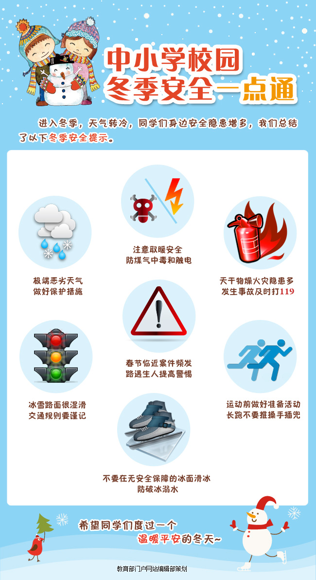 【溫馨提示】為方便老師和同學(xué)們學(xué)習(xí)安全知識(shí),我們制作了“中小學(xué)校園冬季安全一點(diǎn)通”演示文稿,供大家下載使用。