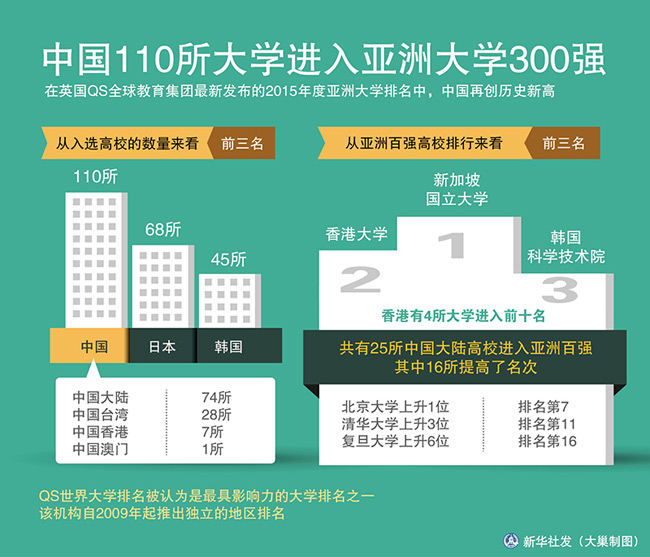 中國110所大學(xué)進入亞洲大學(xué)300強