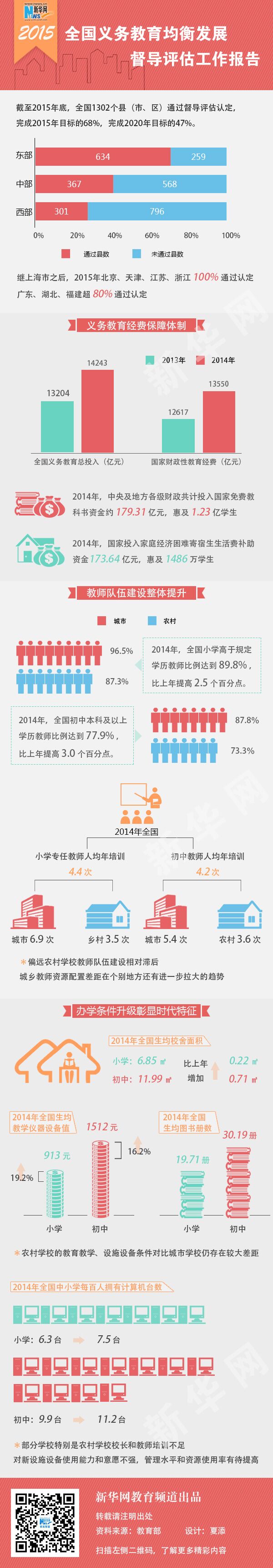2015年是國(guó)家開(kāi)展義務(wù)教育均衡發(fā)展的督導(dǎo)評(píng)估工作的第三年,全國(guó)教育督導(dǎo)系統(tǒng)按照國(guó)家發(fā)展戰(zhàn)略,堅(jiān)持?;?、均等化、可持續(xù)原則,積極努力,扎實(shí)工作。通過(guò)督導(dǎo)評(píng)估,督促地方政府履行教育職責(zé),加快推進(jìn)義務(wù)教育均衡發(fā)展,教育公平邁出重要步伐。截至2015年底,1302個(gè)縣(市、區(qū))通過(guò)督導(dǎo)評(píng)估認(rèn)定,完成2015年目標(biāo)的68%,完成2020年目標(biāo)的47%。
