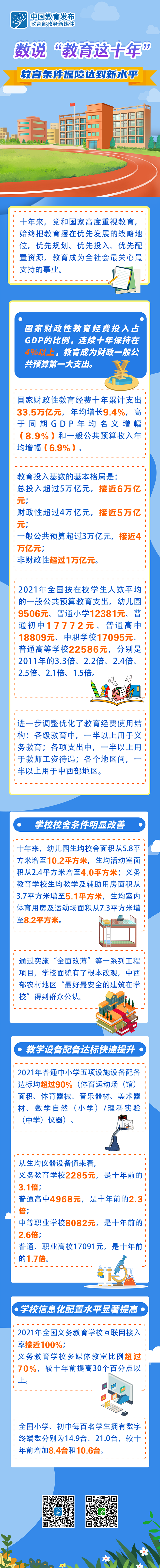 教育是國之大計(jì)、黨之大計(jì)。黨的十八大以來,我國教育面貌正在發(fā)生格局性變化。今天的“教育新征‘圖’”專欄通過一組數(shù)據(jù),“圖”說十年來教育條件保障達(dá)到的新水平——
