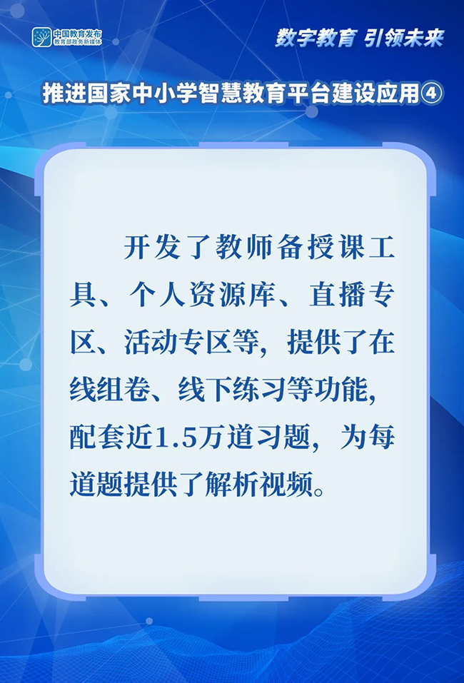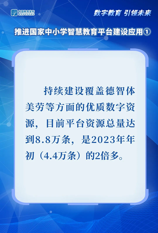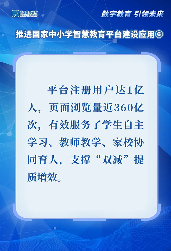 2024世界數(shù)字教育大會(huì)將于1月29日-31日舉辦。即日起,教育部政務(wù)新媒體推出系列圖解,帶你了解我國(guó)推進(jìn)教育數(shù)字化工作和建設(shè)學(xué)習(xí)型社會(huì)、學(xué)習(xí)型大國(guó)相關(guān)舉措。今天,一起來(lái)看國(guó)家中小學(xué)智慧教育平臺(tái)建設(shè)應(yīng)用工作進(jìn)展——