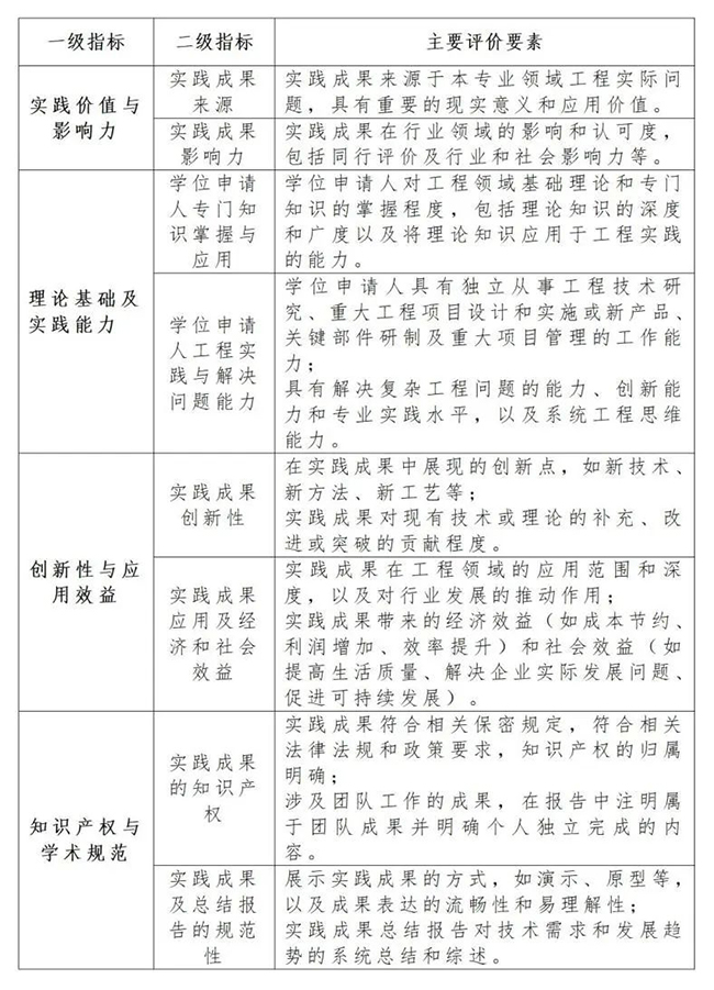 通過學(xué)位論文答辯或者規(guī)定的實(shí)踐成果答辯,是授予博士學(xué)位的前提條件。完成學(xué)位論文或取得實(shí)踐成果是研究生培養(yǎng)的重要組成部分,是對專業(yè)學(xué)位研究生獨(dú)立承擔(dān)專業(yè)實(shí)踐工作能力的全面訓(xùn)練。為貫徹落實(shí)《中華人民共和國學(xué)位法》,落實(shí)《教育部關(guān)于深入推進(jìn)學(xué)術(shù)學(xué)位與專業(yè)學(xué)位研究生教育分類發(fā)展的意見》《專業(yè)學(xué)位研究生教育發(fā)展方案(2020-2025)》等文件精神,構(gòu)建彰顯中國特色、符合教育規(guī)律的工程類專業(yè)學(xué)位研究生質(zhì)量評(píng)價(jià)體系,引領(lǐng)帶動(dòng)教育教學(xué)改革,自主培養(yǎng)卓越工程師和優(yōu)秀工程技術(shù)人才,制定本要求。