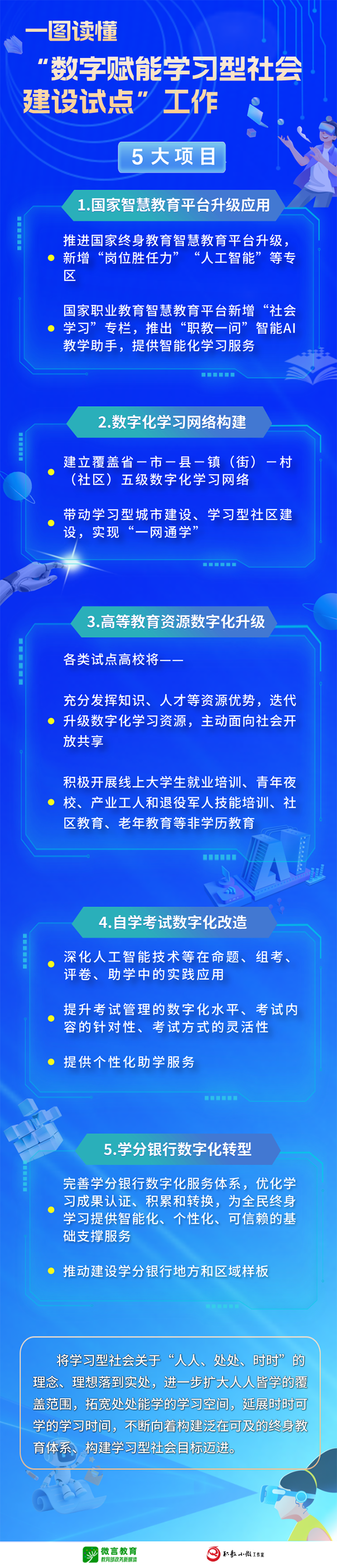 教育部部署“數(shù)字賦能學習型社會建設試點”工作,圖解5大項目