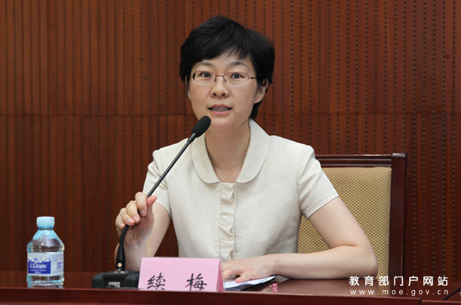 教育部新聞發(fā)言人續(xù)梅主持發(fā)布會。(中國教育報記者 張勁松攝))