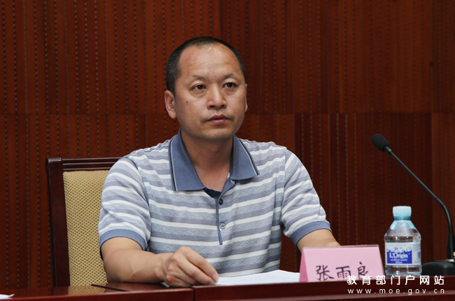 北京市延慶縣大榆樹鎮(zhèn)大榆樹中心小學(xué)教師張雨良介紹提升鄉(xiāng)村教師師德修養(yǎng)和教書育人水平有關(guān)體會。(中國教育報記者 張勁松攝)