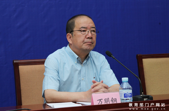 西北師范大學(xué)副校長萬明鋼介紹加強(qiáng)師范生培養(yǎng),提高鄉(xiāng)村教師來源質(zhì)量有關(guān)情況。(中國教育報記者 張勁松攝)
