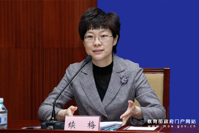 教育部新聞發(fā)言人續(xù)梅主持發(fā)布會。(中國教育報記者 張勁松/攝)