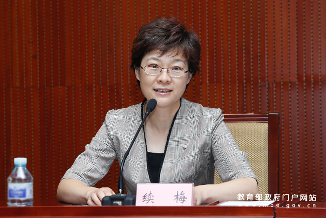 教育部新聞發(fā)言人續(xù)梅主持發(fā)布會。(中國教育報記者 張勁松/攝)